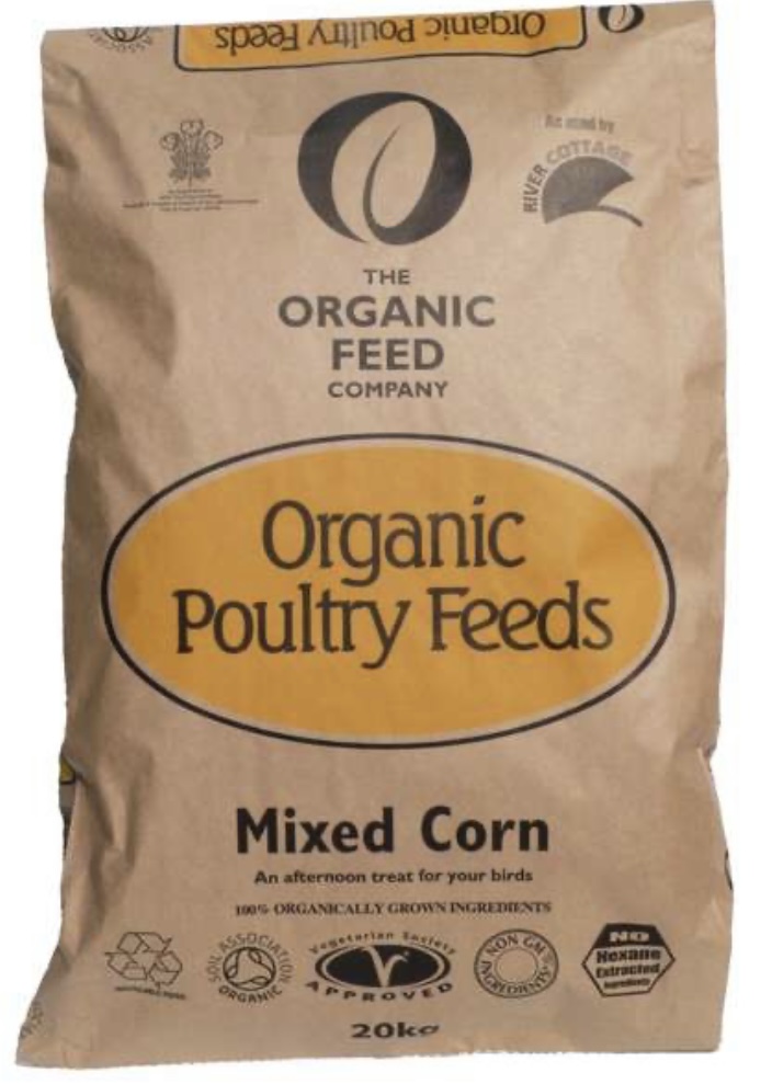 The Organic Feed Company Mixed Corn is an organic combination of wheat, maize, and soya oil that is a nutritious and delicious snack for well-behaved hens.
