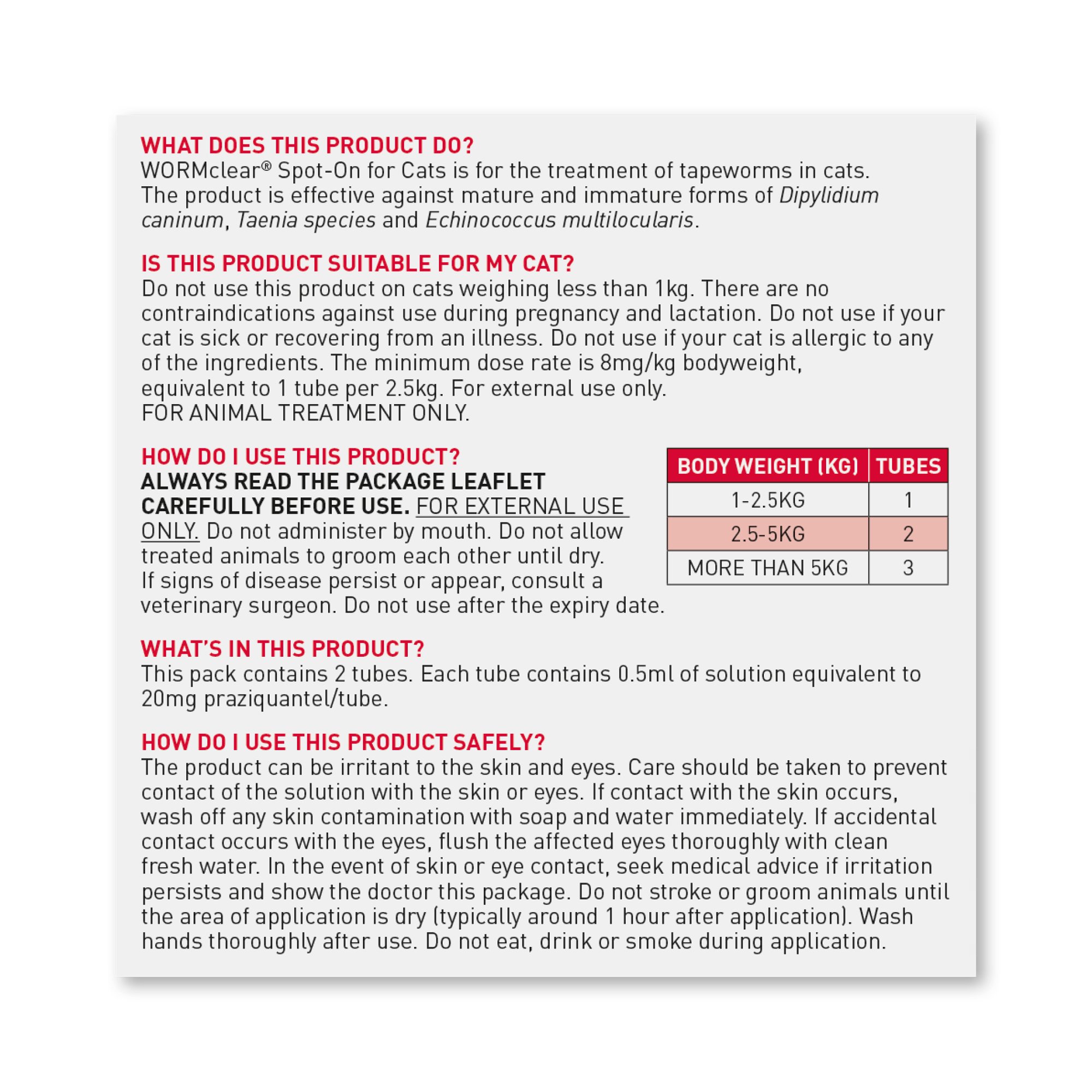 Beaphar WORMclear® Spot-On for cats is a veterinary medicine that kills tapeworms, available without prescription.