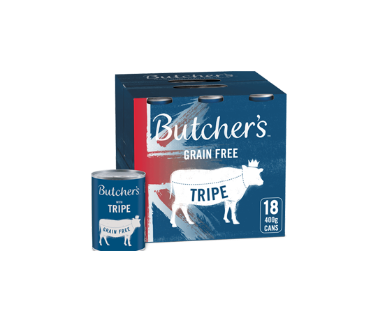This Tripe recipe is naturally packed with high-quality protein, calcium for strong bones, Vitamin B12, and the all-important Omega-3 and Omega-6 to support the immune system and promote healthy skin and shiny coats. Unlike other tripe you’ll find, ours is green, because it comes from grass-fed cattle so retains all its natural nutrients. Being grain free this recipe is naturally gluten free, containing no grains or bulkers. This Tripe recipe is Butcher’s original recipe, and has been carefully made since 1987! Tripe is the natural super foods for dogs, with a taste they just love!