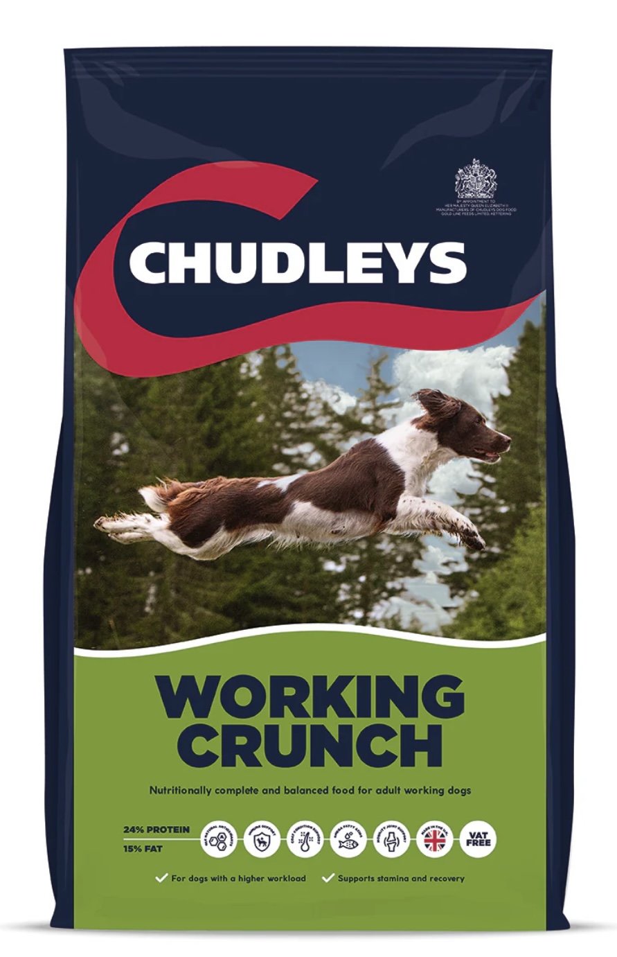 Chudleys Working Crunch is the ideal option for highly active dogs or gundogs needing to fuel a higher workload. The diet is formulated with increased protein inclusion for muscle recovery and strength, along with enhanced fat levels to maintain stamina when on the go. Working Crunch is packed with enhanced vitamins, amino acids, and trace nutrients which synergistically support a dog’s immunity, digestion, coat condition and general wellbeing.