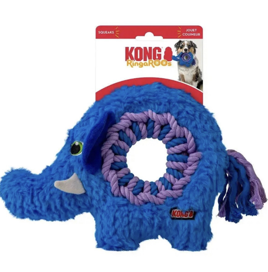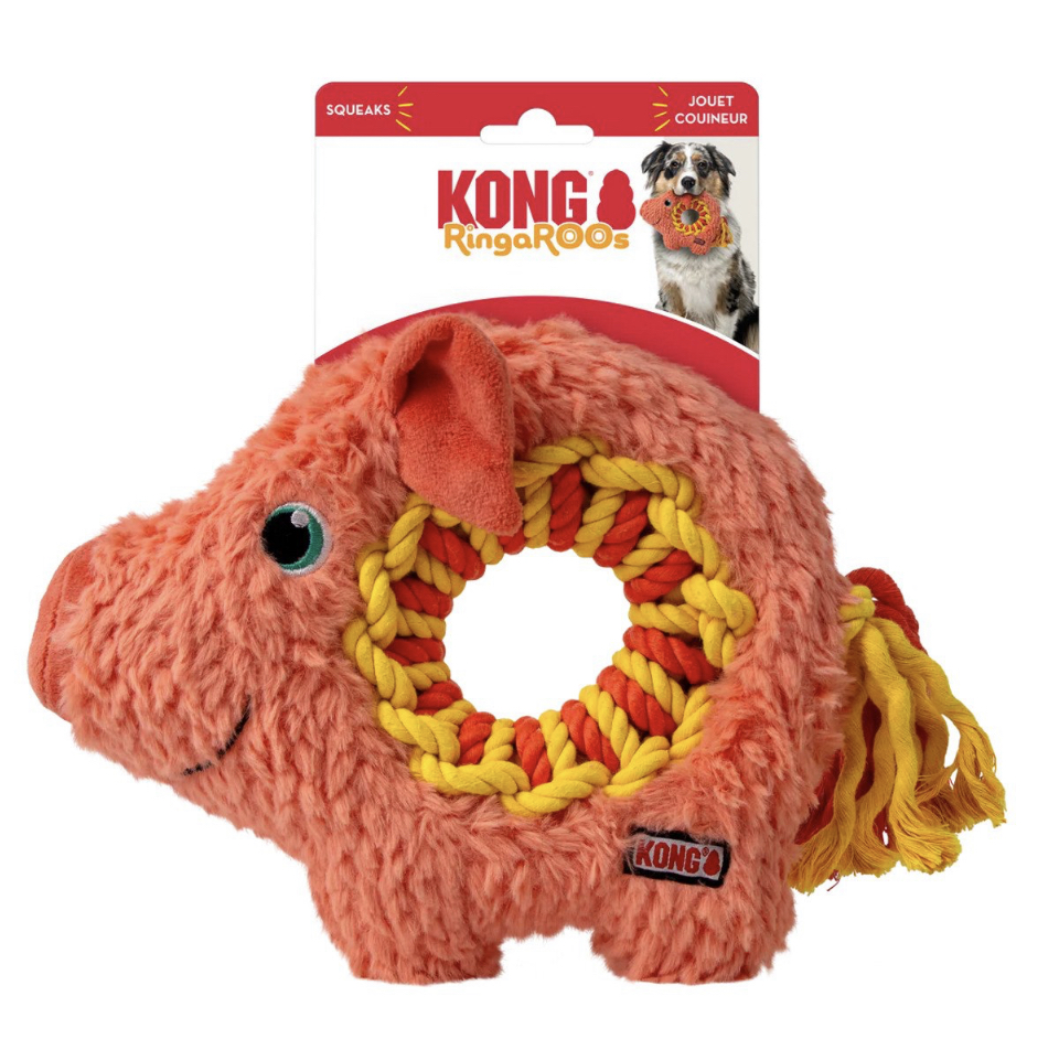 KONG Ringaroos bring tough and plush fun to daily playtime. Featuring a robust rope ring surrounded by a soft, comforting pal, Ringaroos are the ideal shape and size for toss-and-carry play sessions. Multiple textures entice fetching, biting, tugging, and snuggling when playtime is over. A squeaker inside this plush pal’s head engages instincts and prolongs play.