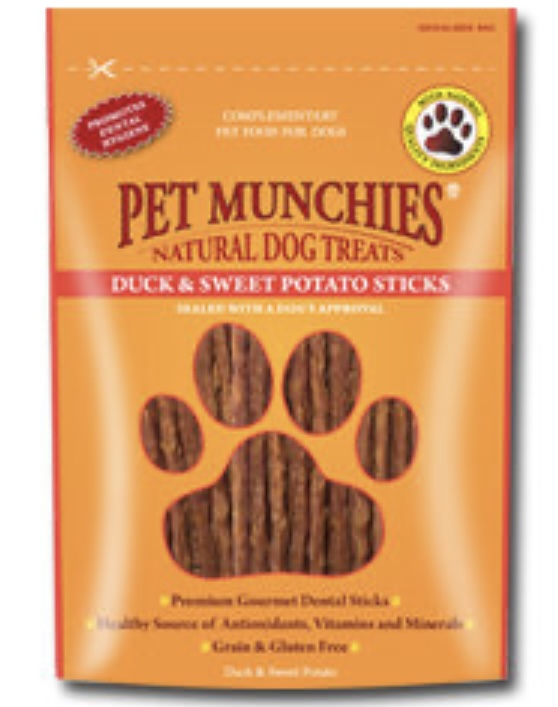 Pet Munchies Dog Treats Duck & Sweet Potato Sticks 90g