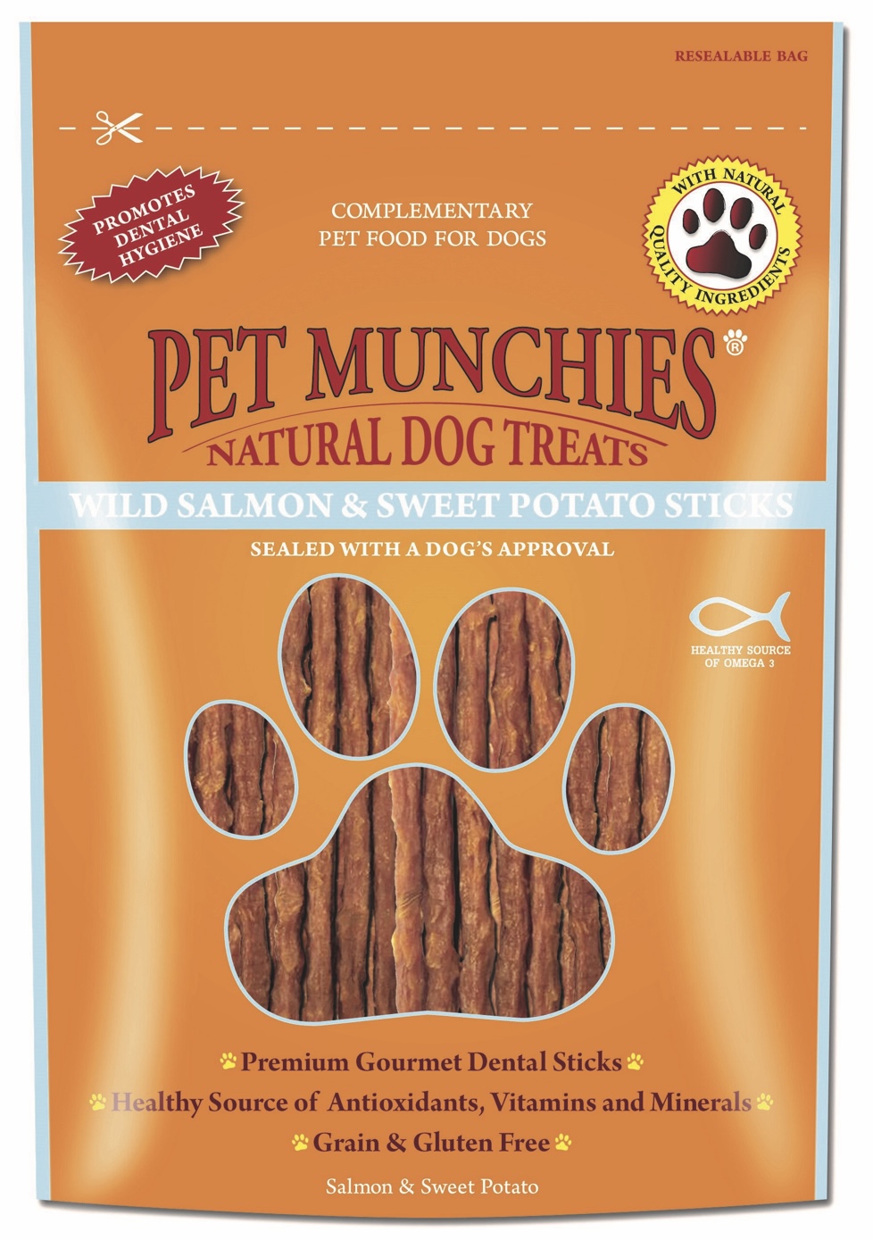 Pet Munchies Dog Treats Wild Salmon & Sweet Potato Sticks 90g