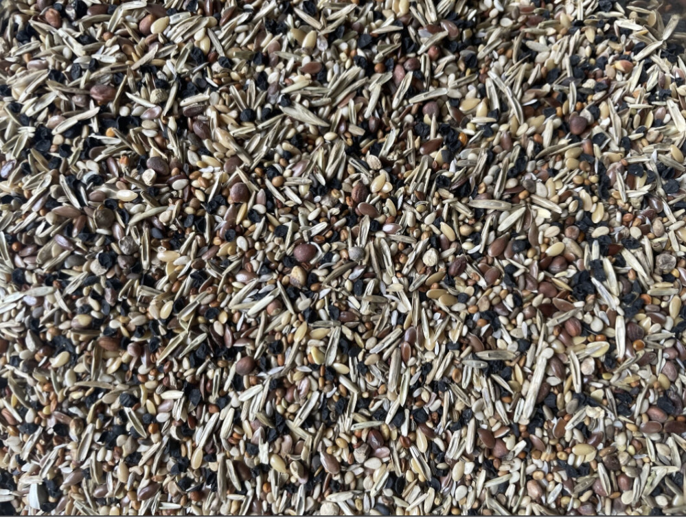 wild seeds 75%, linseed 8%, carrot seed 6%, sesame seed 6%, panicum yellow 4%, panicum red 1%
